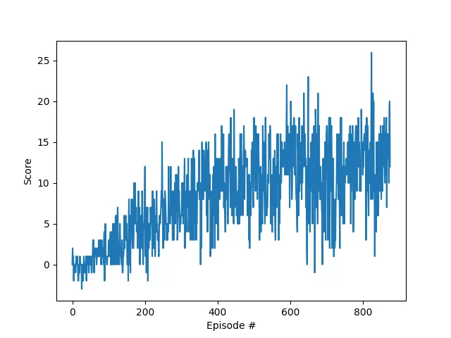 The agent was trained using a Deep Q Learning algorithm and was able to solve the environment in less than 1000 episodes.