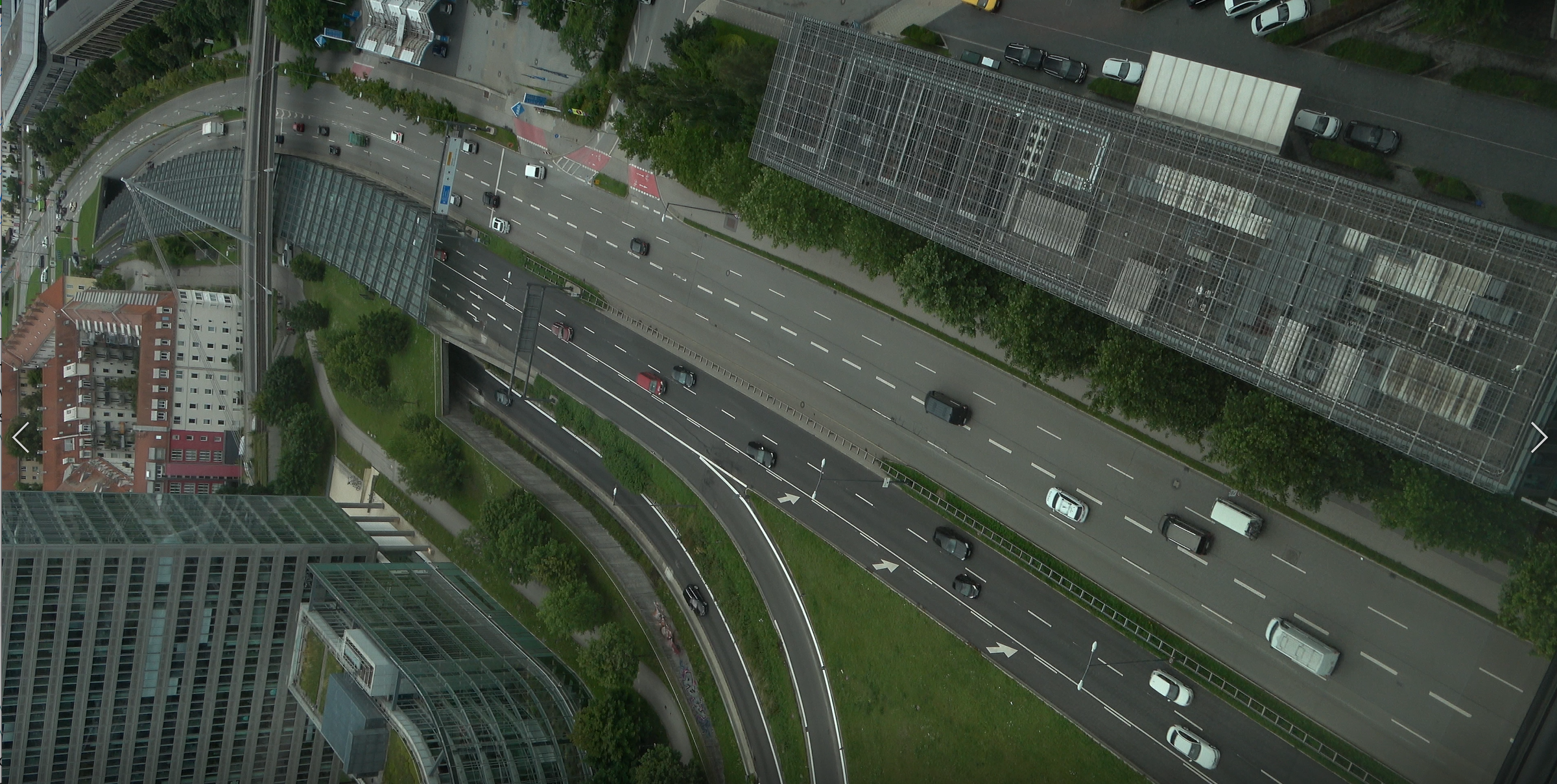 The Munich Highlight Tower Dataset is a collection of traffic footage. It differs from many Traffic datasets as it captures the vehicles from a higher altitude. It is categorized into three sub-datasets that differ in terms of perspective: Ring ost, Ring west and Zip merge.